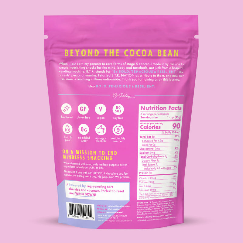 Functional Ingredients: Sustainably and ethically sourced cacao is combined with fiber-rich functional ingredients, elevating these cups beyond the ordinary.