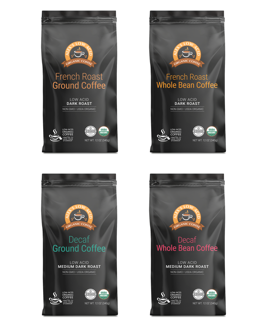 Alex's Low Acid Organic Coffee™ - 4-Bag Variety Pack (12oz)