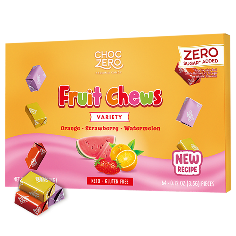 Bursting with the flavor of strawberry, watermelon, and orange, our sugar free fruit chews are just like their sugary components--without any of the junk! They're the perfect treat to take with you when you want the deliciousness of candy with the benefits of fiber and the lack of sugar crash.