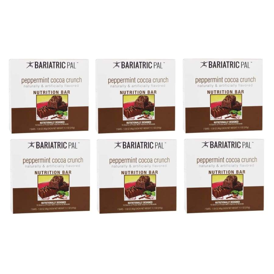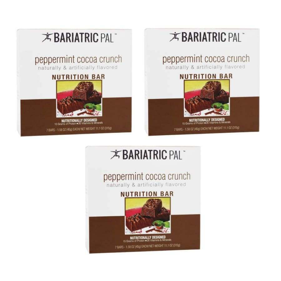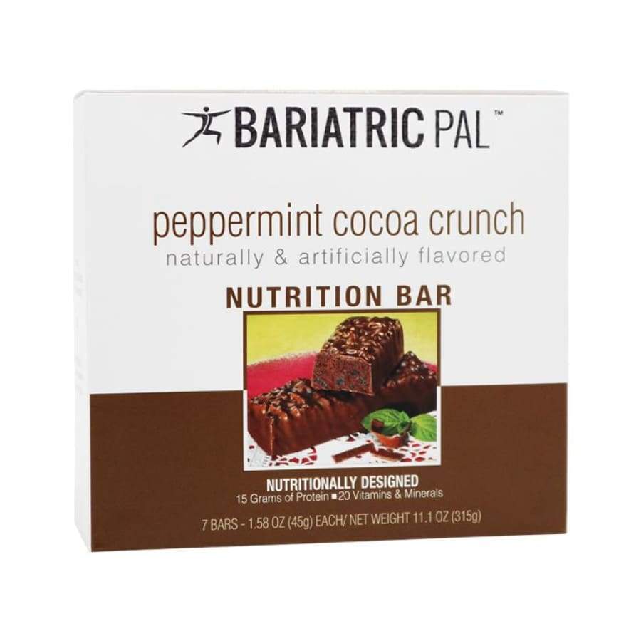 Chocolate peppermint can be a satisfying flavor for dessert or snack, but it can bring far too many calories and grams of sugar. Enter BariatricPal 15 gram Protein Bars - Peppermint Cocoa Crunch. They have a protein-packed core coated with a generous amount of chocolatey icing, but they have only 8 grams of sugar.