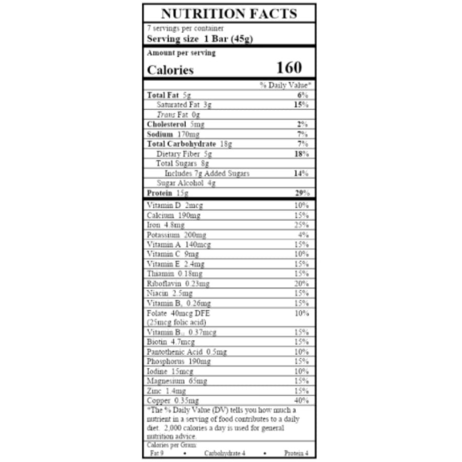 Directions: Unwrap the bar and enjoy as a high protein snack or breakfast alternative.
