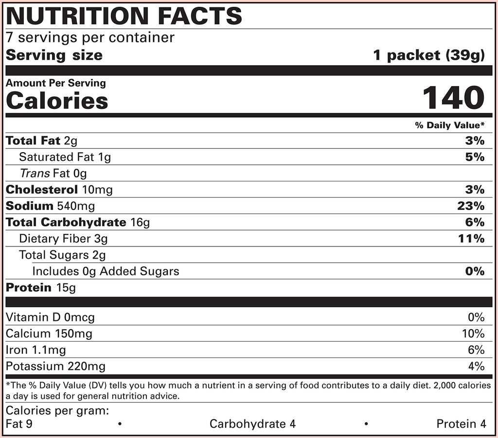 Crafted without aspartame and packed with fiber, essential vitamins, and minerals, this creamy, cheesy pasta features a mild nacho kick that's perfect for lunch or dinner. Just add water and heat—it’s that easy to enjoy a hearty, nutritious meal in minutes.