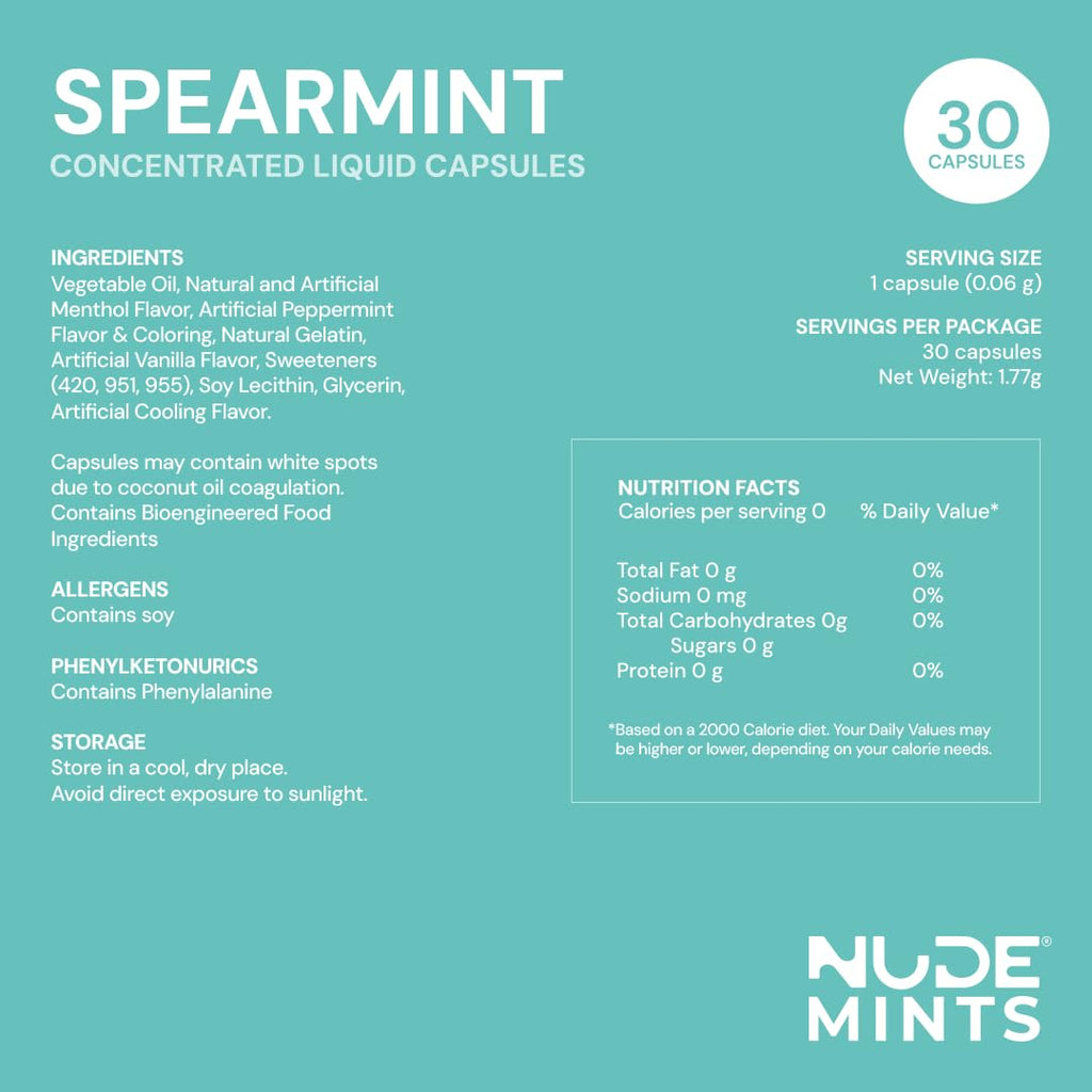 The NUDE MINT has two capsules. The outer capsule dissolves in the mouth in 3 seconds, and releases the mint extract to cleanse the mouth and tongue. The inner capsule is then swallowed, releasing the inner mint extract in the gut, freshening the gut.