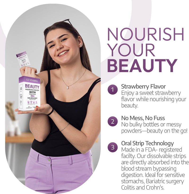 EZ VITAMINS Dissolvable Oral Beauty Strips - Hair, Skin, & Nails
