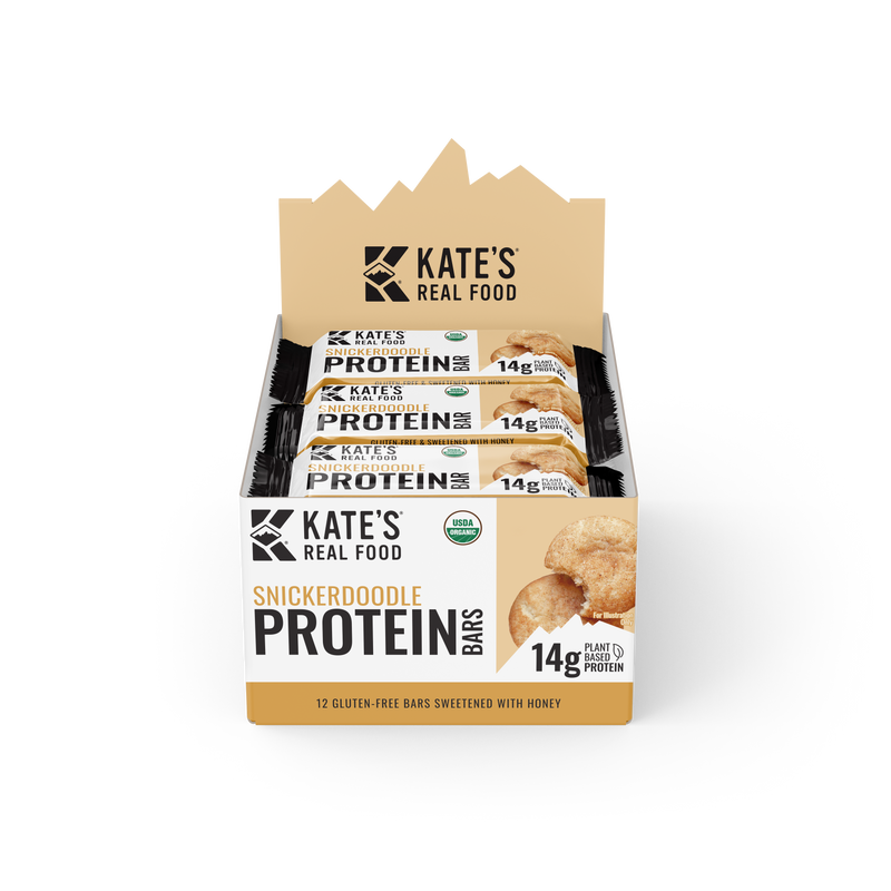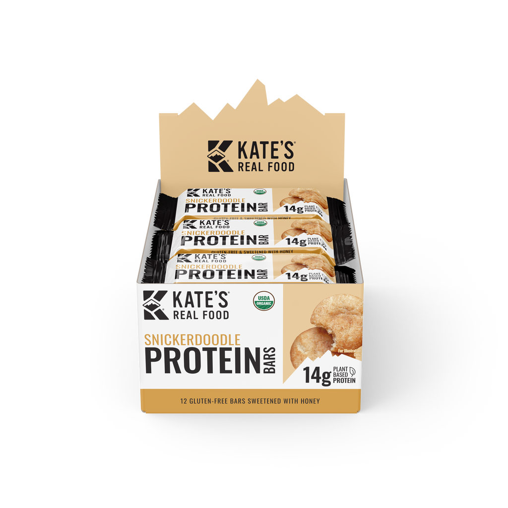 Kate’s Real Food Protein Bars are packed with the perfect balance of organic ingredients and protein to keep you satisfied and energized. Made with organic honey and real flavors like Snickerdoodle, Peanut Butter Cup, and Peanut Butter Brownie, these organic granola bars deliver a delicious boost without compromising on quality. Each bar is a great source of protein and a tasty gluten-free snack that’s perfect for fueling your day. Whether you’re looking for post-workout recovery or a satisfying on-the-go treat, our protein bars have you covered.