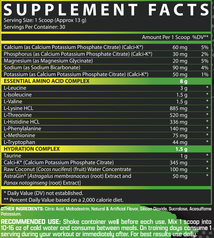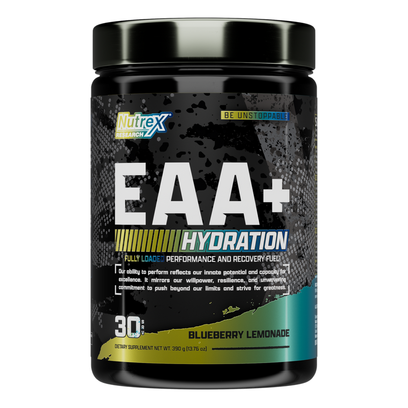 Nutrex EAA+ Hydration is your all-in-one essential amino acid formula designed to fuel muscle recovery, combat fatigue, and support intense training sessions. Packed with a full spectrum of Essential Amino Acids (EAAs), including Branched-Chain Amino Acids (BCAAs), this blend delivers the building blocks your muscles need to repair and grow.