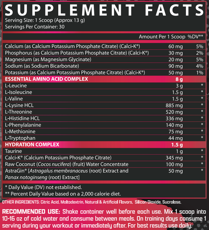 Mix 1 scoop with 10–14 oz of cold water and sip during workouts, throughout the day, or whenever you need hydration and recovery support.