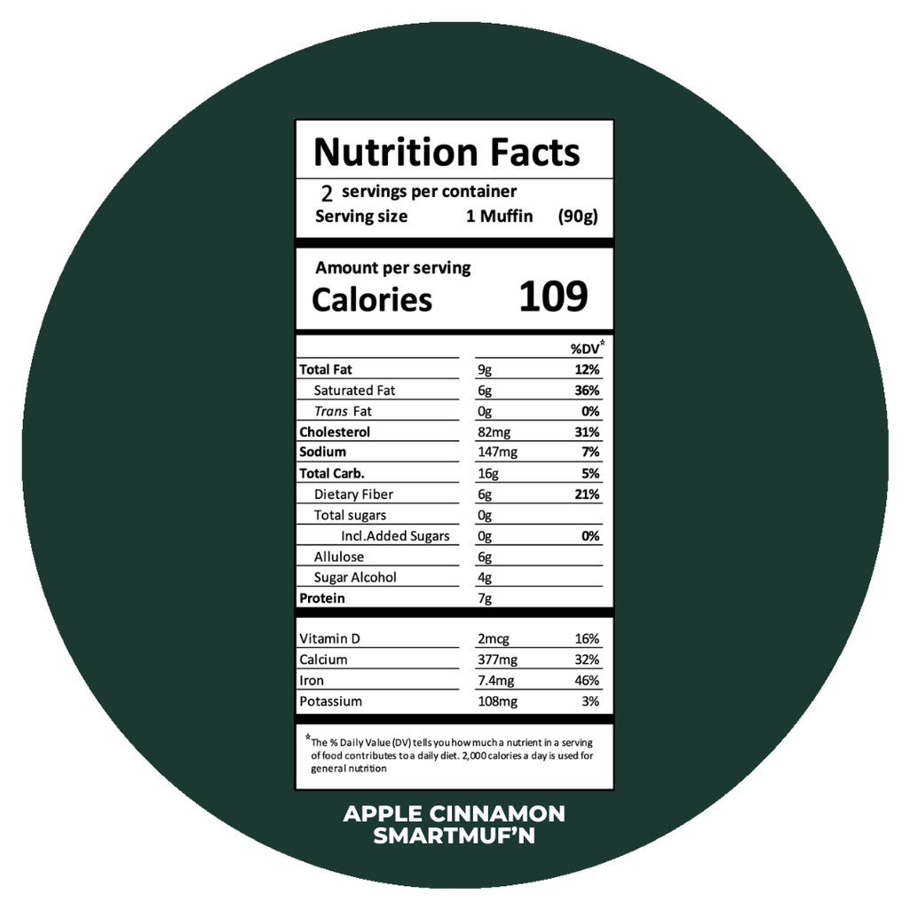 Smart Baking Company SmartMuf'n is a low calorie, low carb muffin top with enough fiber and protein to fuel your day. Sweetened with erythritol, monk fruit, and stevia, Smart Baking Company SmartMuf'n has zero net carbs.