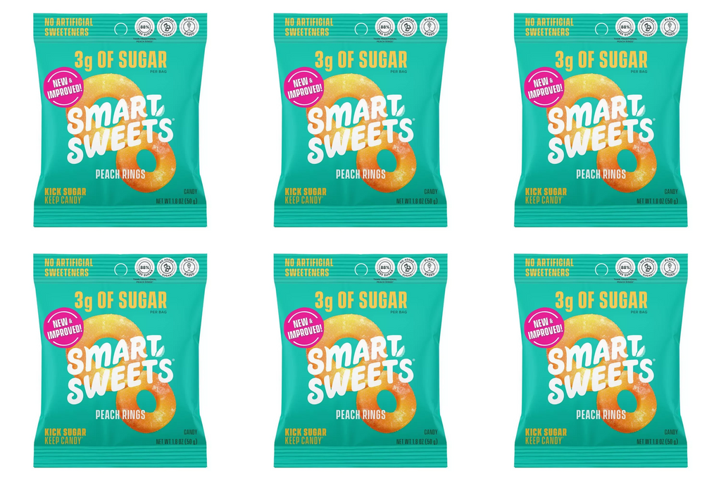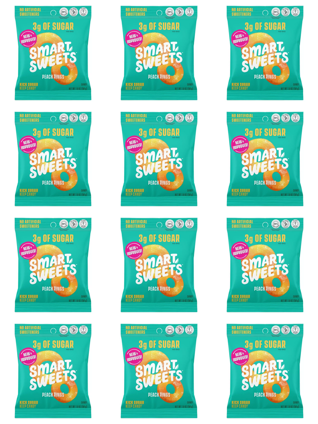 Smart Sweets Peach Rings are a low carb, high fiber treat that's bursting with juicy, fruity flavor. Smart Sweets Peach Rings contain no artificial sweeteners, sugar alcohols, or artificial colors.